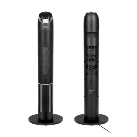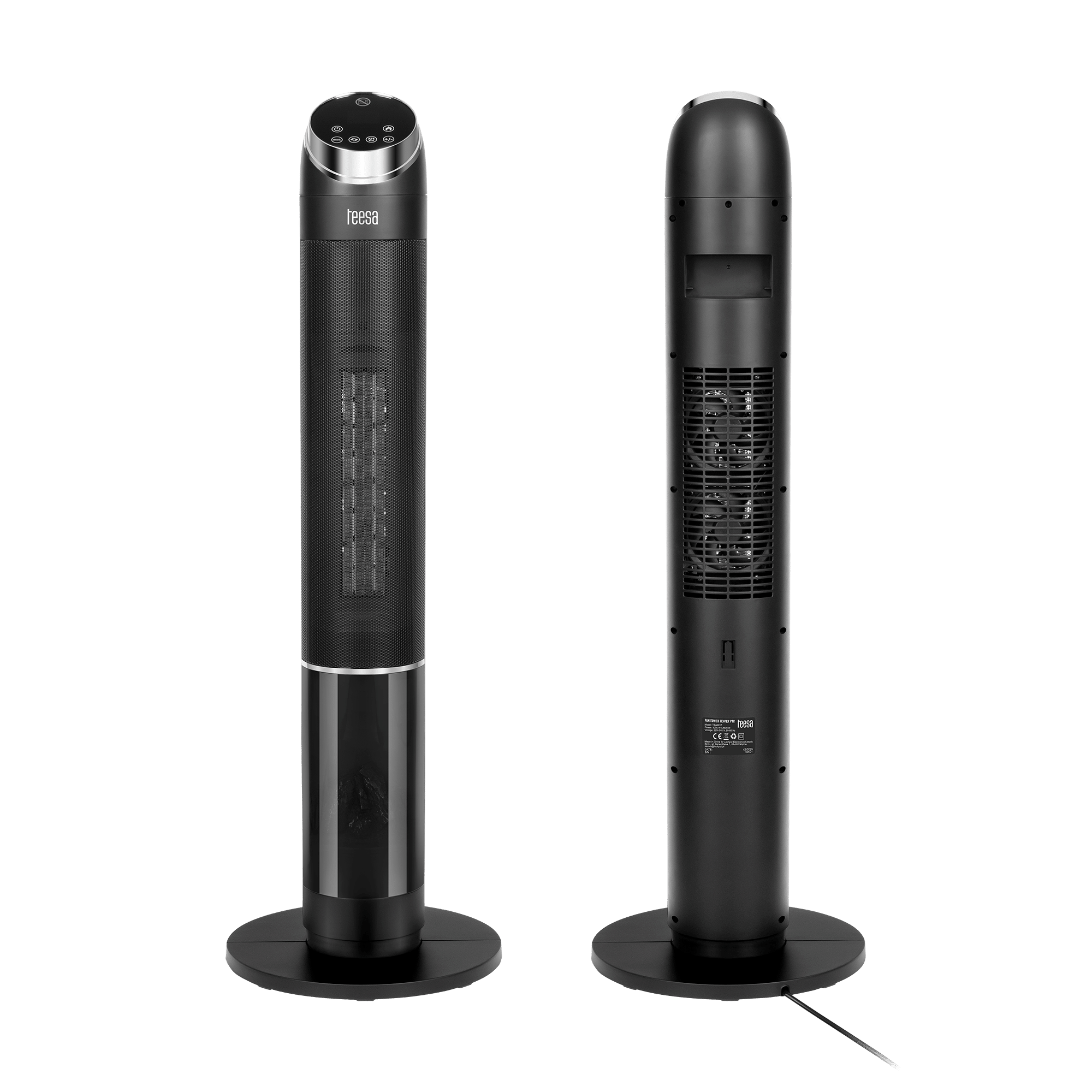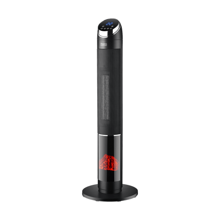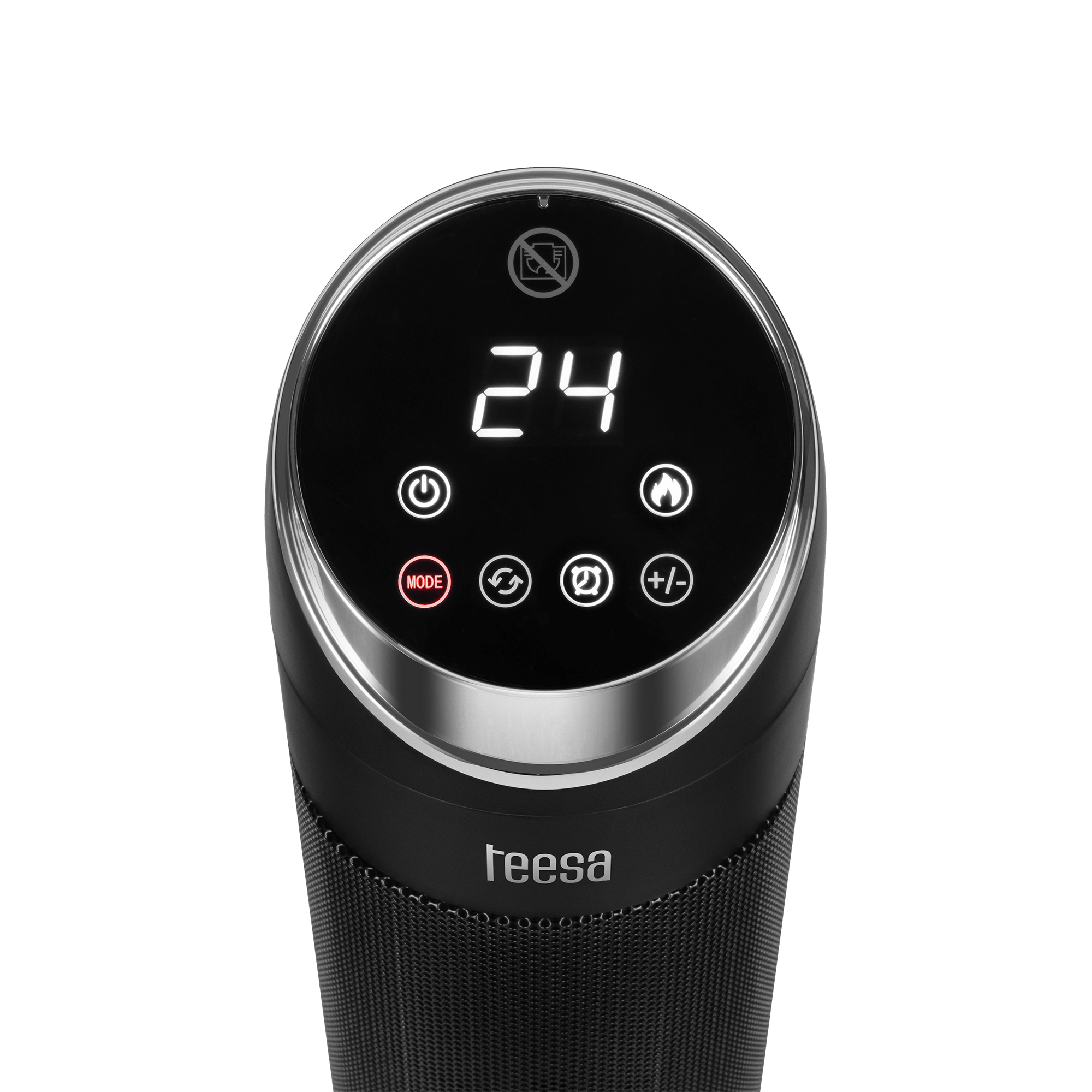 U bedient de kachel eenvoudig dankzij het duidelijke en heldere LCD display met touchscreen, waarmee het verwarmingsniveau (1000 / 2000W), de temperatuur (18 - 45°C) een "swing" modus (draaibereik van 90°) en een timer kunnen worden aangepast. Dit kunt u ook op afstand doen, met de meegeleverde afstandsbediening.